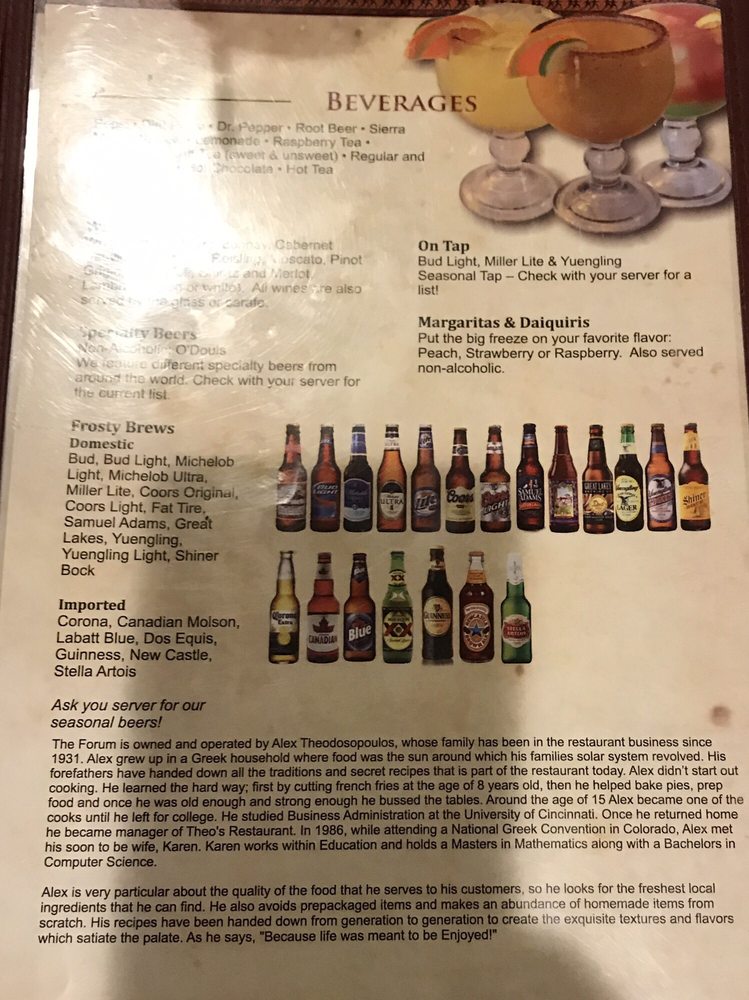Located in Cambridge, Ohio, The Forum offers an enticing blend of Greek and Italian cuisine alongside delicious sandwiches. Established in 1995, this casual dining spot is perfect for groups and families, featuring a vibrant atmosphere with moderate noise levels, outdoor seating, and a full bar.